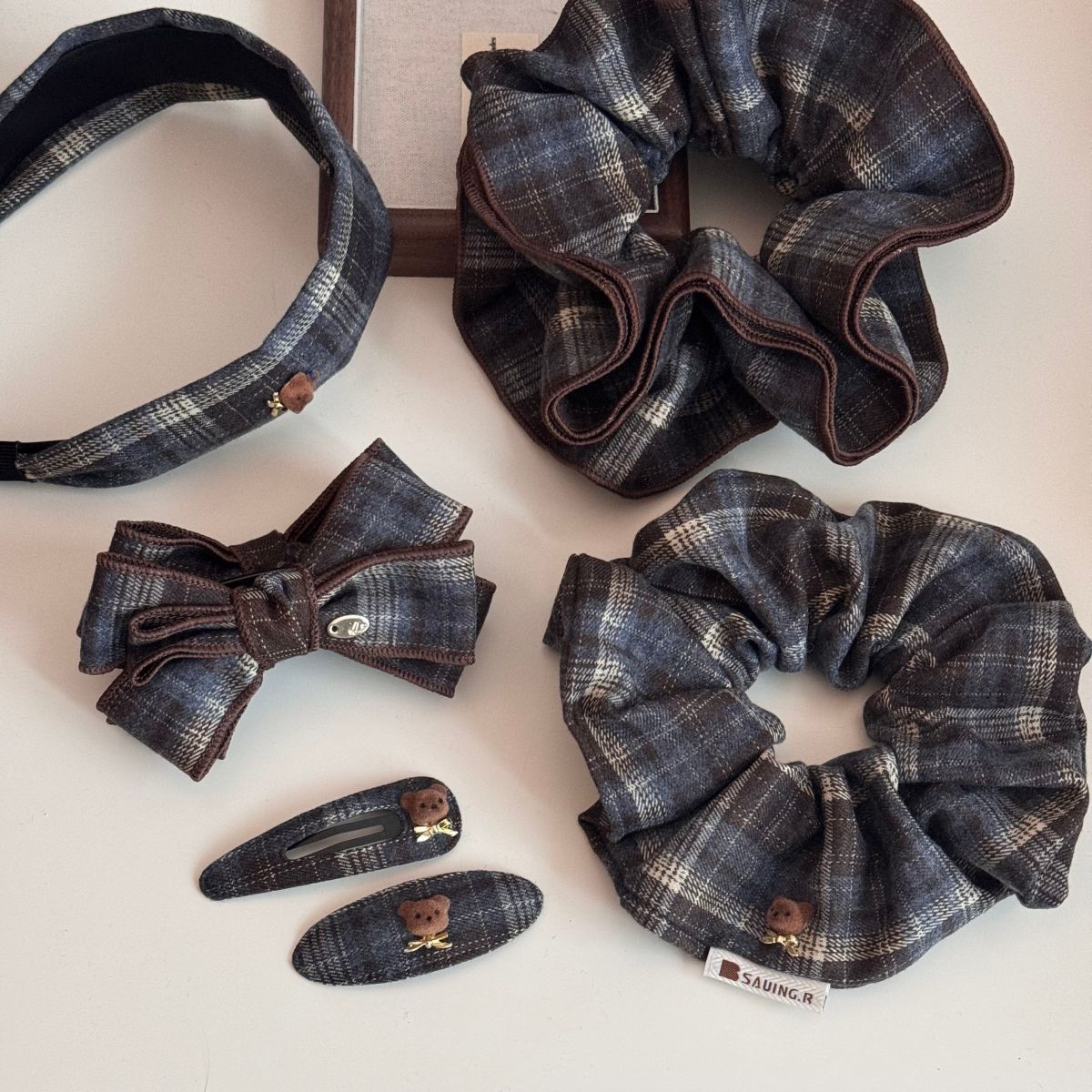 Vintage Plaid Teddy Bear Bow Banana Clip