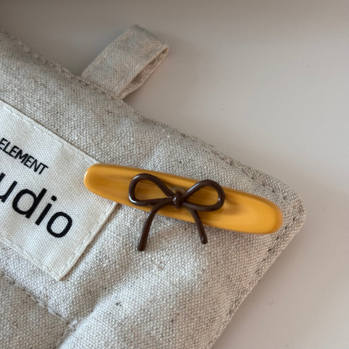 Yellow-Brown Bow Hairpin – Minimalist Side Clip for Girls